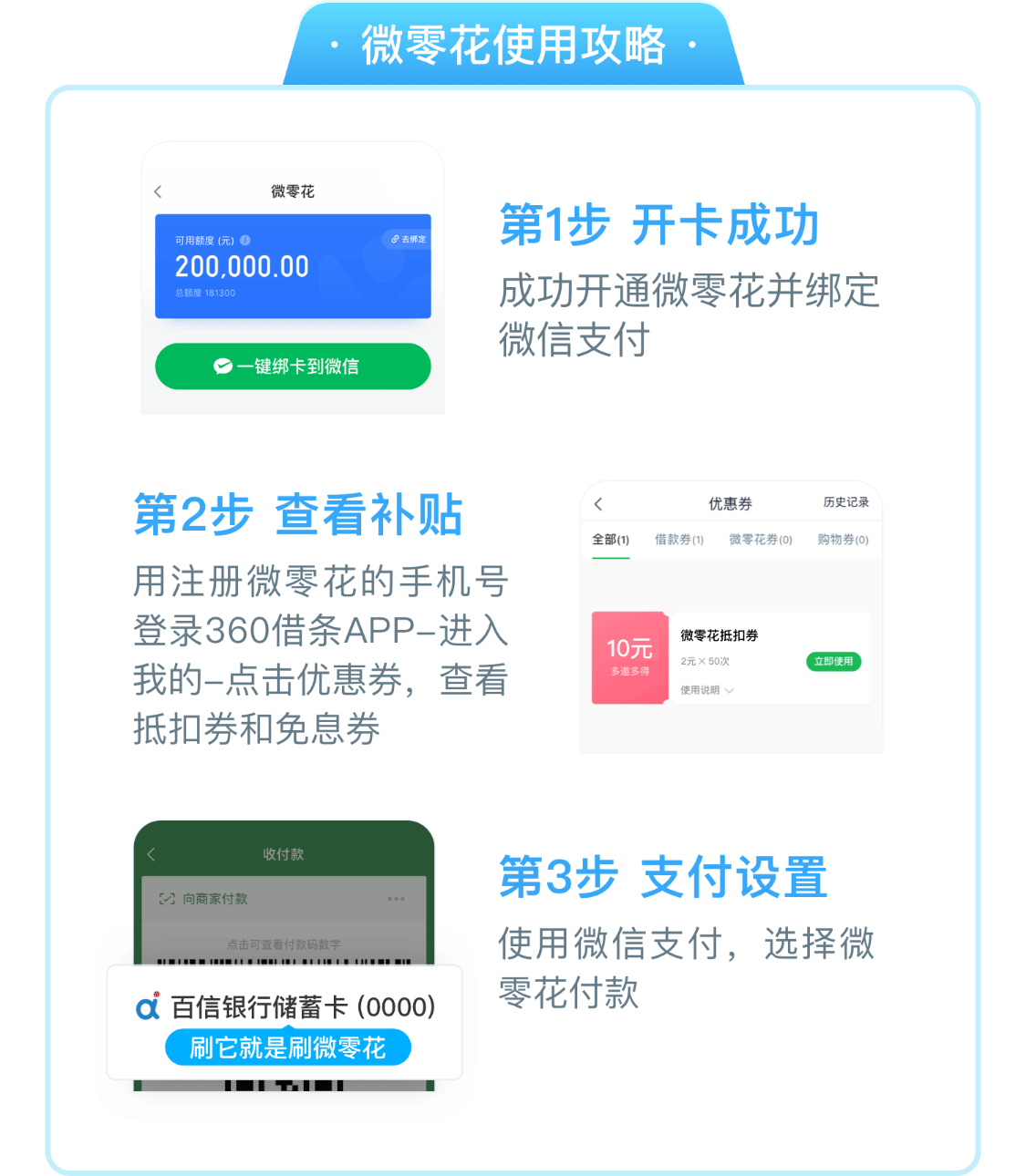 2. 本活动仅限未开通微零花的新用户参与,已注销用户再次开通微零花或者已授信360借条的用户都无法获得对应奖励。
